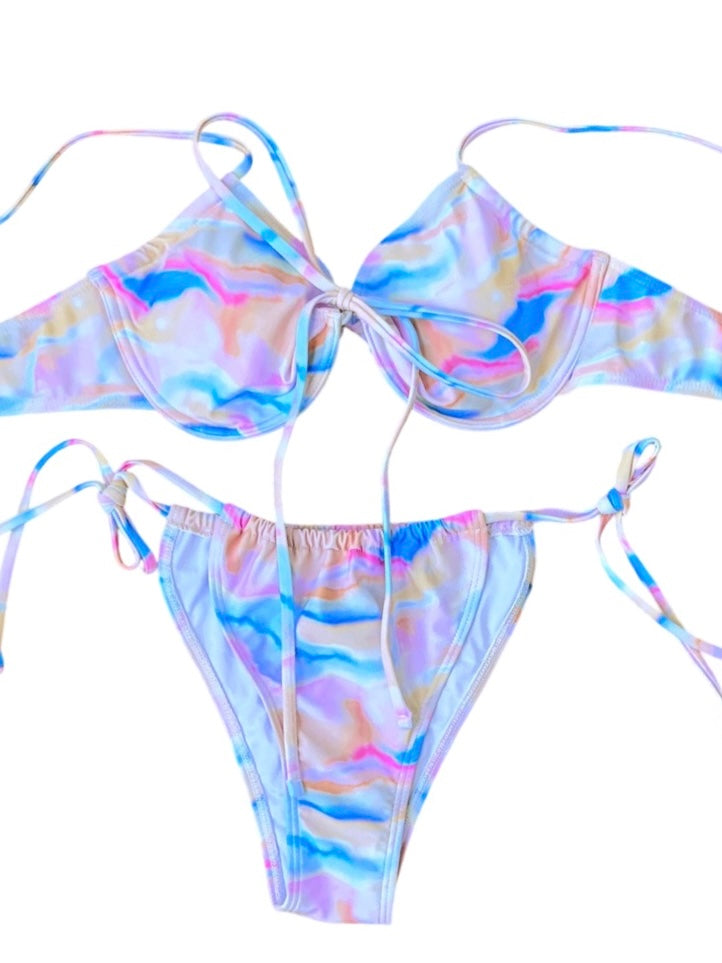 The Fiji bikini is the embodiment of dreamy island days and pastel sunsets. With its soft tie-dye hues and feminine silhouette, this set brings a playful yet polished vibe to any tropical escape. Designed to move effortlessly from beach lounging to seaside cocktails.