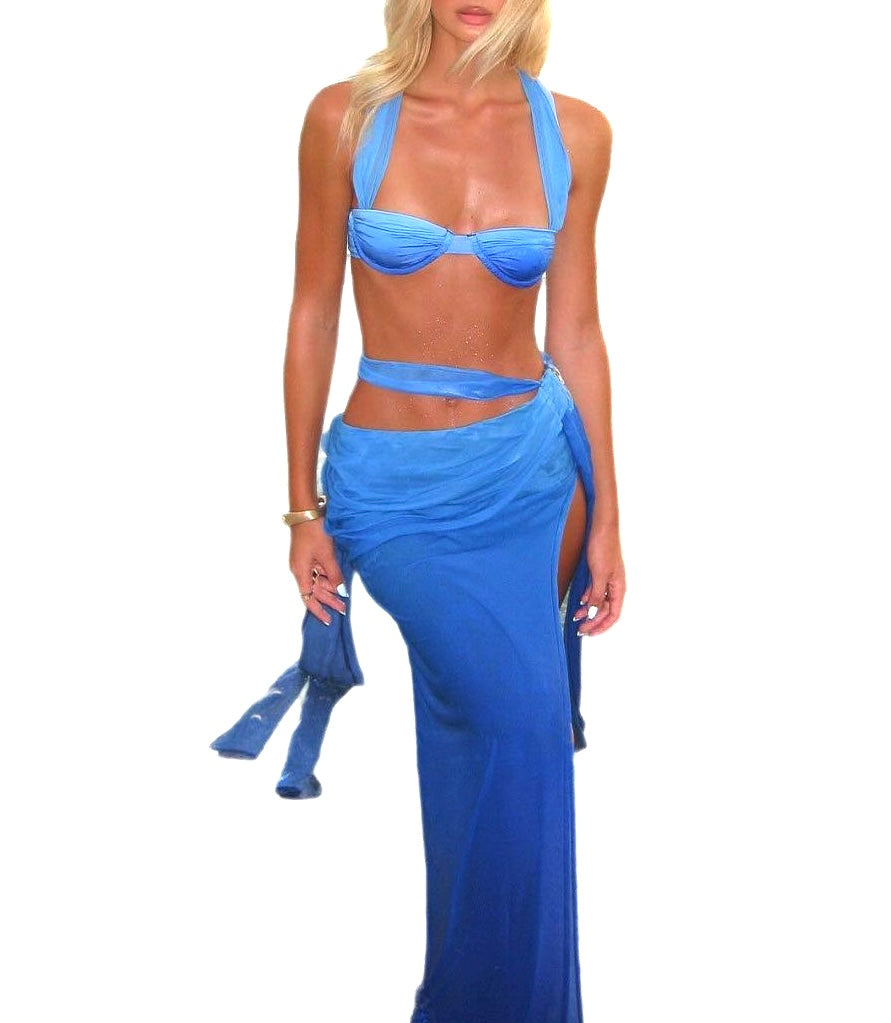 The Maldives set captures the essence of tropical luxury with its ocean-inspired gradient and effortlessly chic silhouette. Designed for sun-drenched getaways, it’s the perfect blend of elegance and allure — made for days by the sea and nights under island skies.