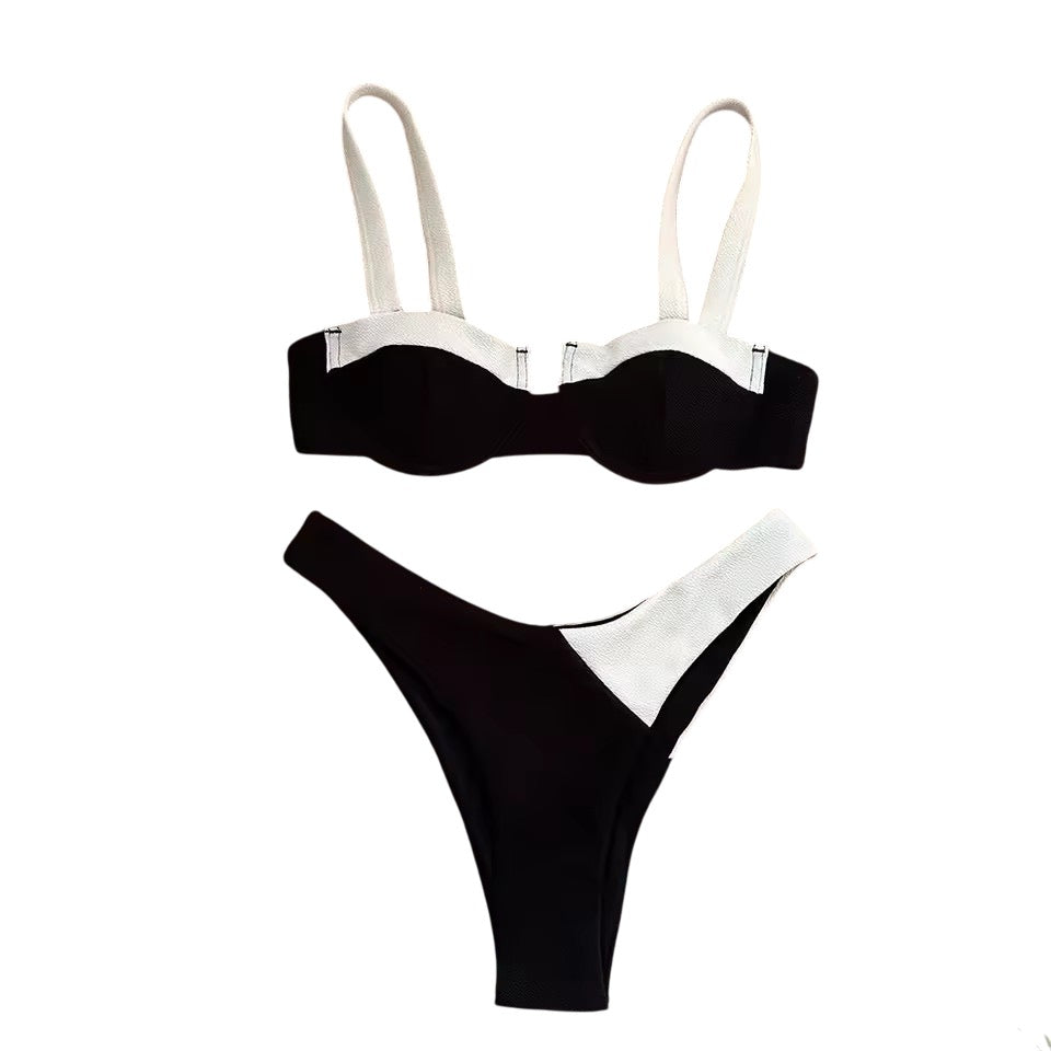 A fusion of modern edge and timeless minimalism, the Tokyo bikini embodies the chic, clean lines of contemporary Japanese design. Its striking black-and-white contrast creates an instant statement, while the structured underwire top provides definition and elegance. Sleek, refined, and effortlessly fashion-forward—perfect for the woman who loves a bold yet elevated look.
